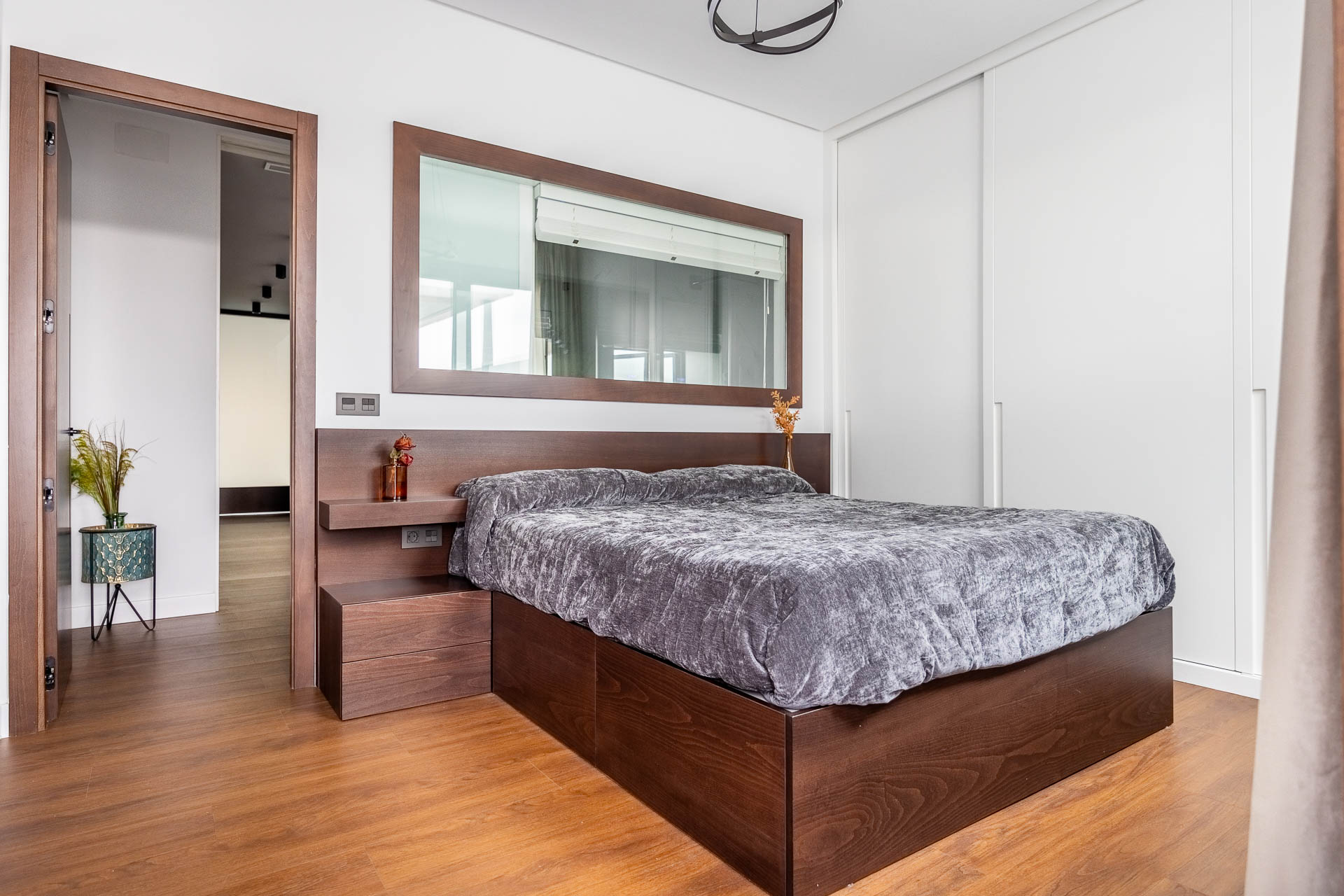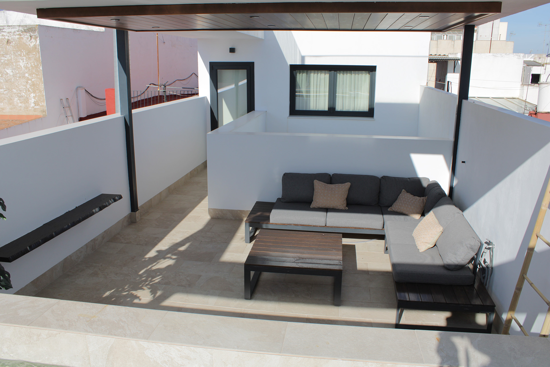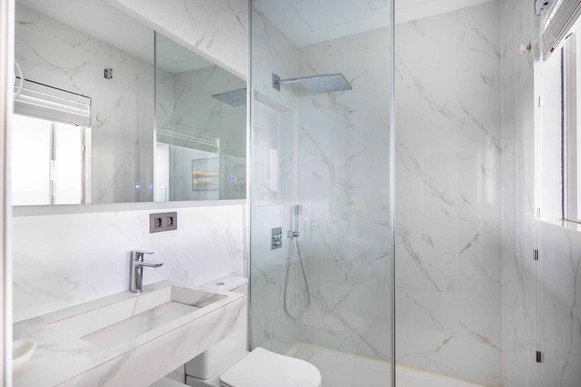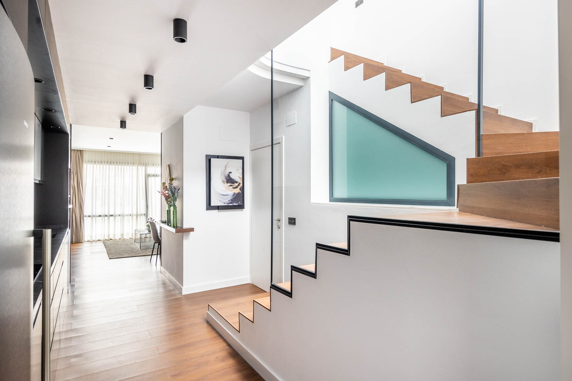 La elección de materiales y acabados responde a criterios de calidad y confort, logrando interiores cálidos y sofisticados. En la fachada, el proyecto sigue una estética moderna y racionalista, maximizando la entrada de luz natural y asegurando una imagen armónica dentro del entorno urbano.