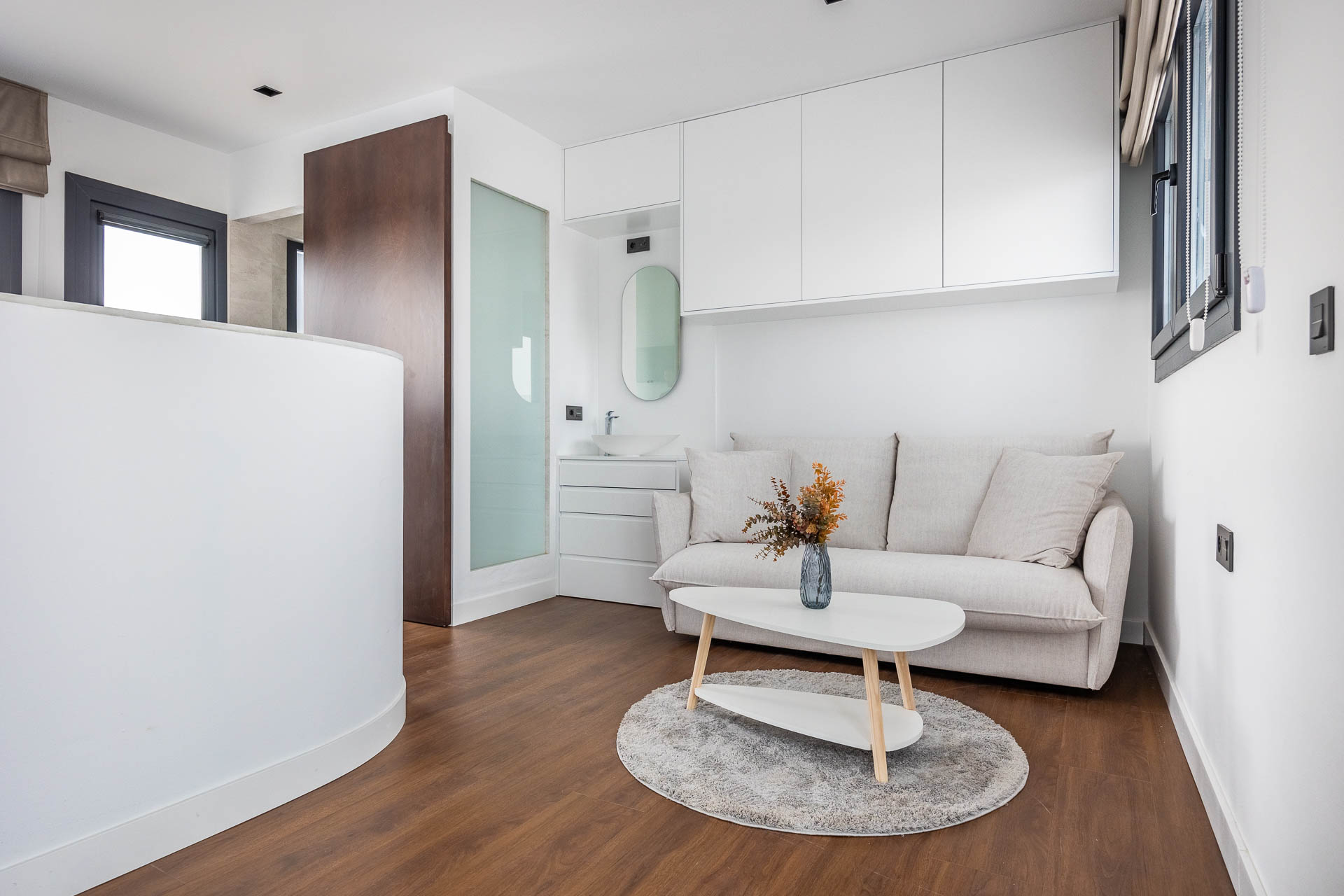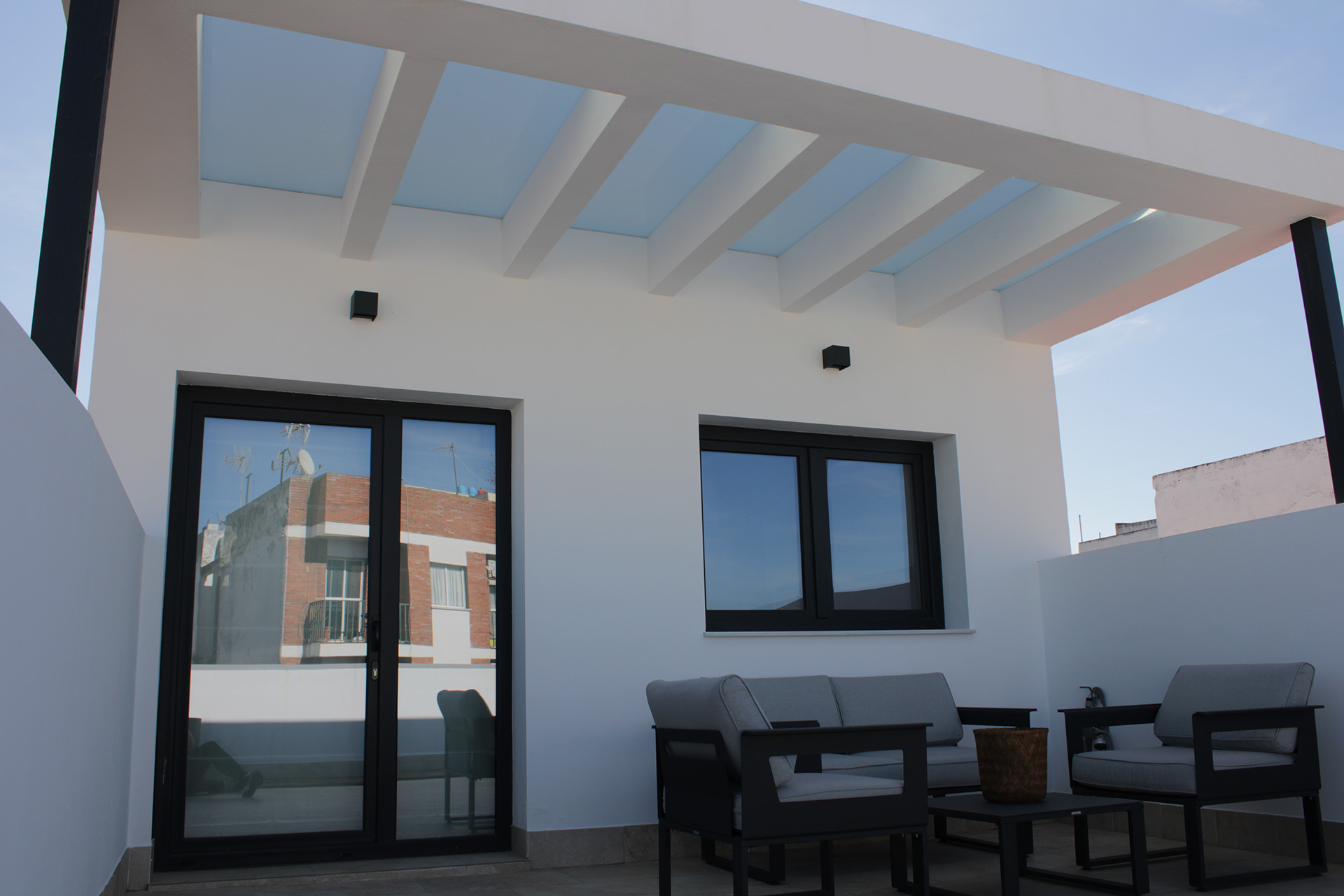 El diseño apuesta por la luminosidad y la flexibilidad espacial, con viviendas que priorizan la conexión entre estancias mediante grandes puertas correderas, permitiendo configurar los espacios según las necesidades del usuario. Cada unidad se distribuye en vestíbulo, salón-comedor, cocina, baño y dos dormitorios, garantizando una organización funcional y equilibrada.
