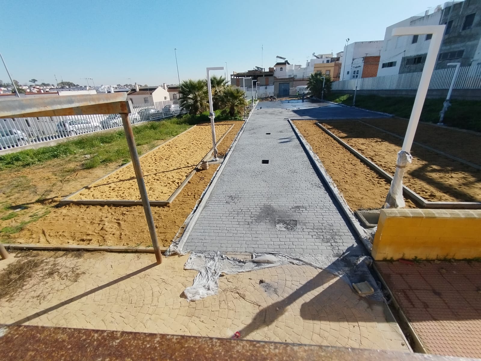 Se renueva este espacio deportivo con la instalación de un nuevo cerramiento, la eliminación de barreras arquitectónicas y la creación de nuevas áreas como una zona de juegos infantiles accesible, un área de esparcimiento canino y un espacio de ejercicio físico con maquinaria especializada. Se instala una fuente lúdica con chorros verticales y se mejora la vegetación con nuevas plantaciones y elementos de sombra.