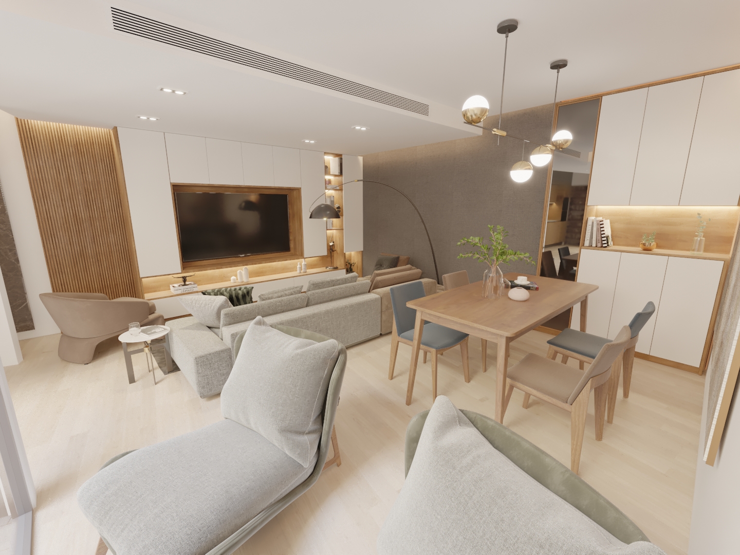 Los vidrios perimetrales permiten que todas las áreas estén visualmente conectadas, generando una sensación de unidad espacial fluida y dinámica.